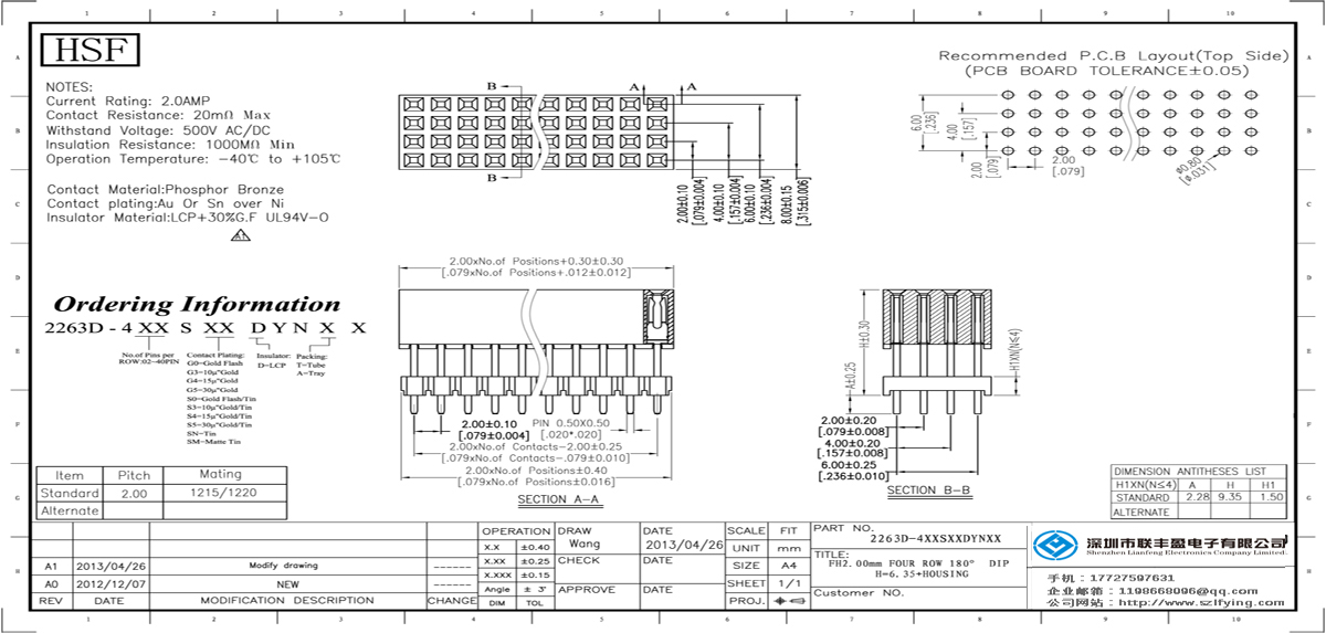 產品分類:PC 104連接器 產品型號:2.0 排母 4*30P 180 PA9T黑色 H=9.35 連接器聯豐盈 技術參數:額定電流:2.0amp電流電阻:20m最大絕緣電阻:1000m承受電壓:AC 500V /分鐘工作溫度:40﹣℃+ 1