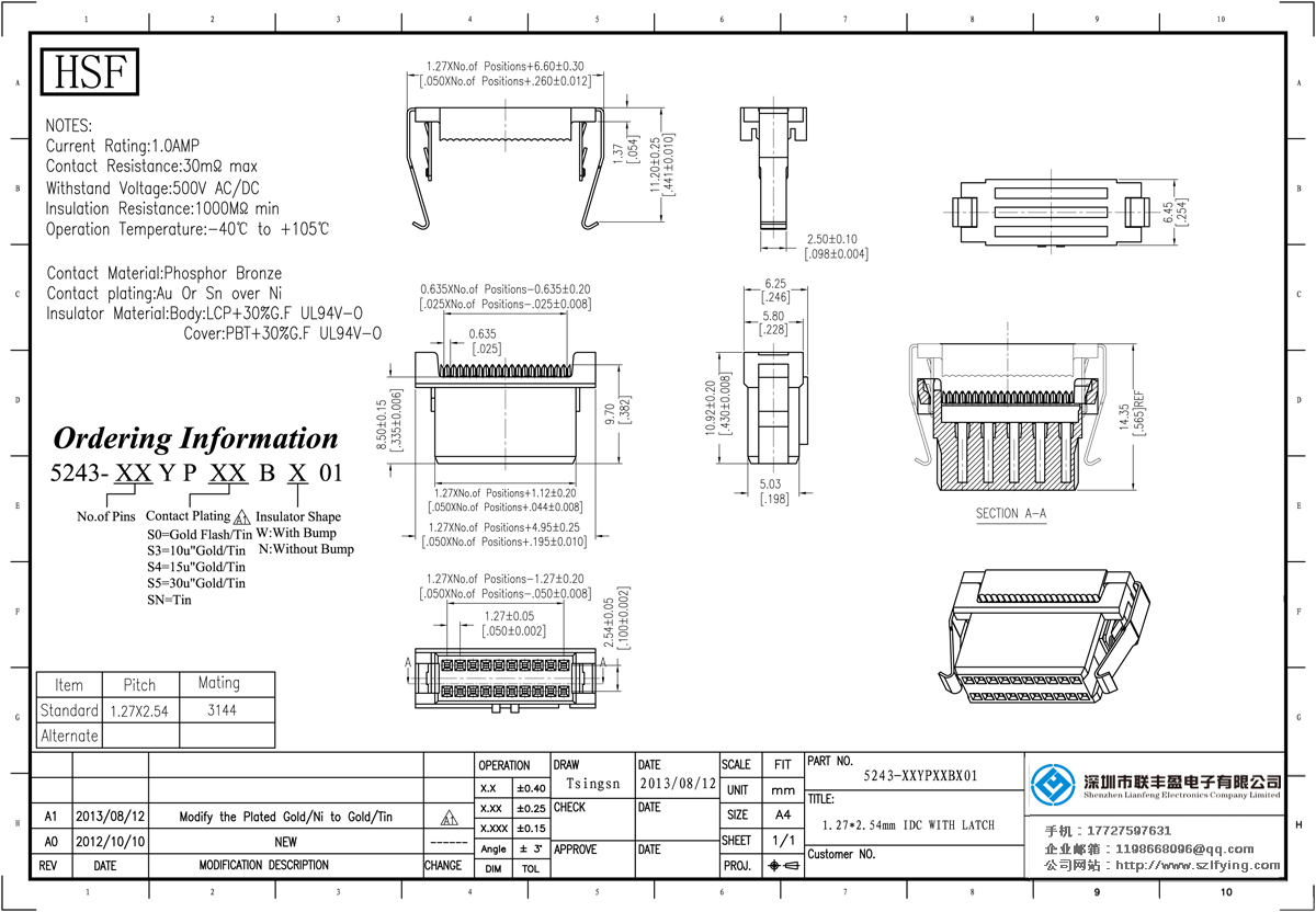 產(chǎn)品分類:IDC插座連接器 產(chǎn)品型號:1.27*2.54 TYCO 彈片型 IDC 聯(lián)豐盈 供應(yīng) 技術(shù)參數(shù):額定電流:1.0amp電流電阻:20m最大絕緣電阻:1000mmin耐壓:1000V AC /分鐘工作溫度:40﹣℃+ 105℃接觸材