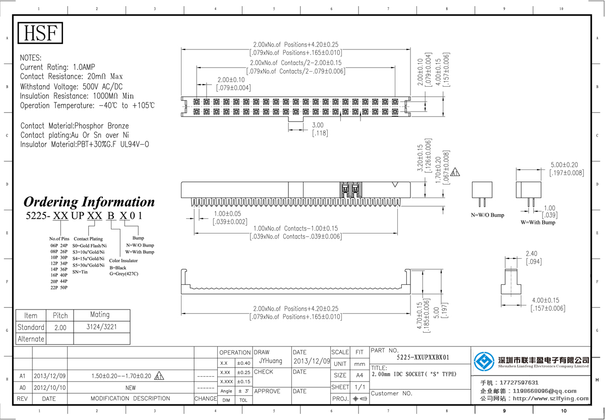 產品分類:IDC插座連接器 產品型號:2.00 U型 帶凸點 IDC 生產聯豐盈供應 技術參數:額定電流:1.0amp電流電阻:20m最大絕緣電阻:1000mmin耐壓:1000V AC /分鐘工作溫度:40﹣℃+ 105℃接觸材