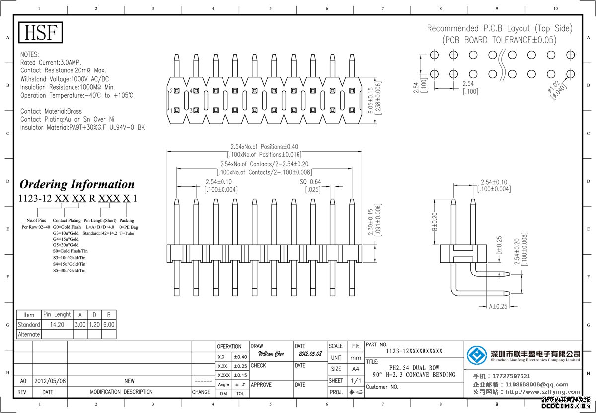 產(chǎn)品分類: 排針連接器 產(chǎn)品規(guī)格:2.54MM 雙排 90DIP 排針 聯(lián)豐盈 產(chǎn)品介紹:額定電流:3.0amp電流電阻:20m最大絕緣電阻:1000m民承受電壓:AC 500V /分鐘工作溫度:40﹣℃+ 105℃接觸材料: