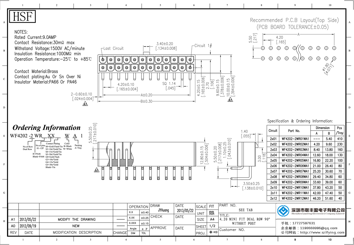 產品分類:Wafer連接器 產品型號:4.2MM Wafer 塑膠 聯豐盈生產廠家 產品特點: 輸出電流接觸電阻:2om最大耐壓:1500V交流/分鐘的絕緣電阻:1000m最小工作溫度:25℃+ 85℃絕緣體材質:尼龍
