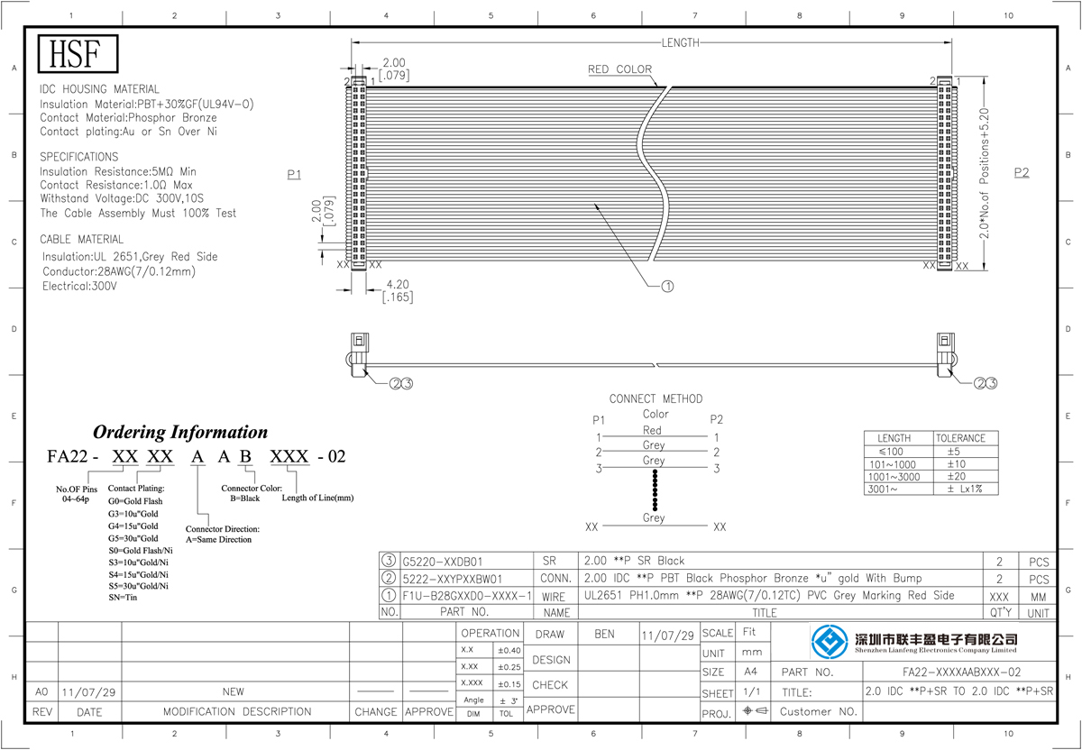產品分類:灰排線 產品型號:2.54 IDC 接線頭 板對線 排線 定制 產品名稱: 扁平電纜,與IDC配對使用 以實現板對線連接 產品特點: 目前的評級:1.oamp接觸電阻:20m最大承受電壓:500V的交流