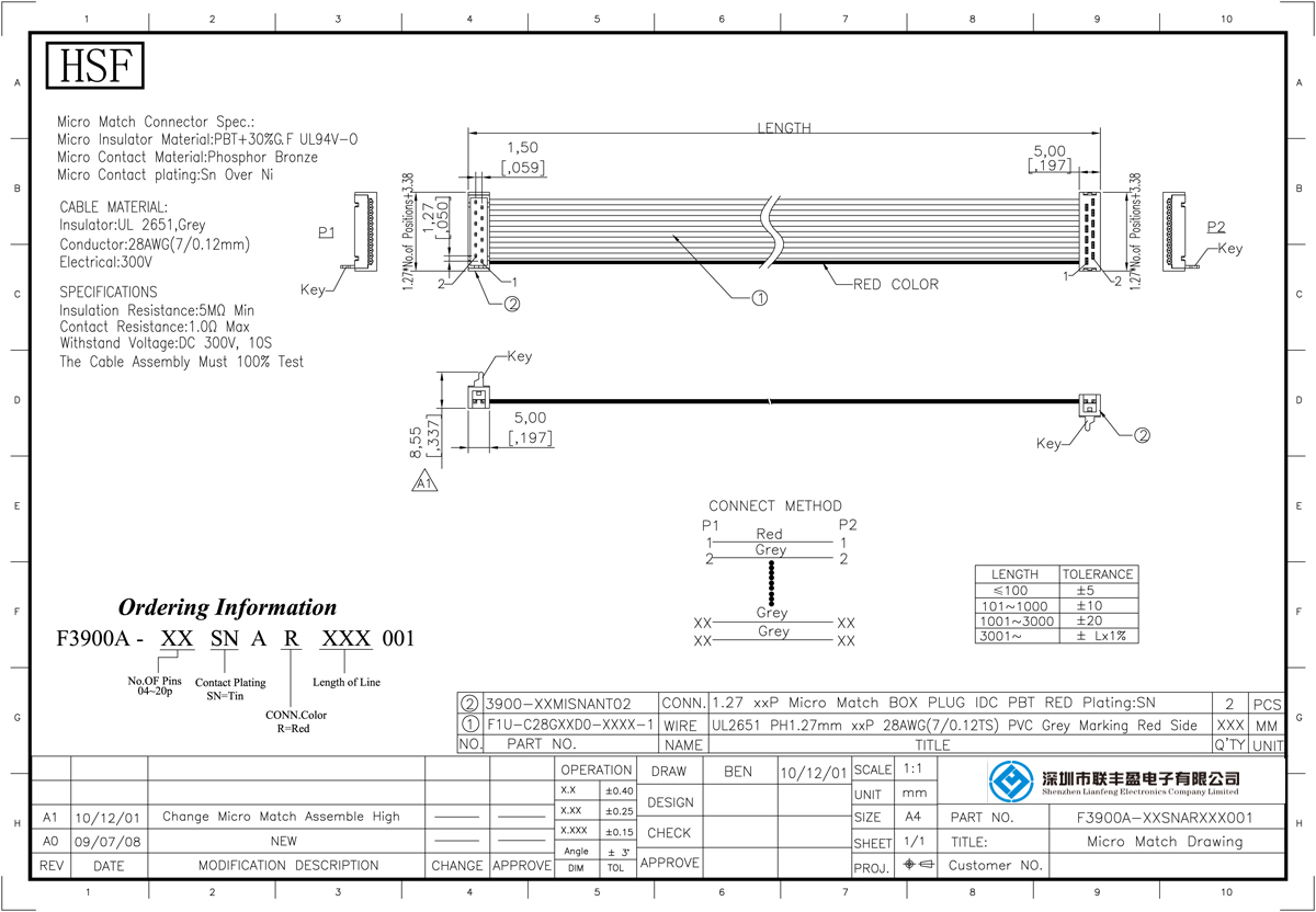 產品分類:灰排線 產品型號:1.27 灰排線 Micro match 廠家 產品名稱: 扁平電纜,與IDC配對使用 以實現板對線連接 產品特點: 排線具有優良的電性能、介電性能、耐熱性、耐酸堿,耐油,耐