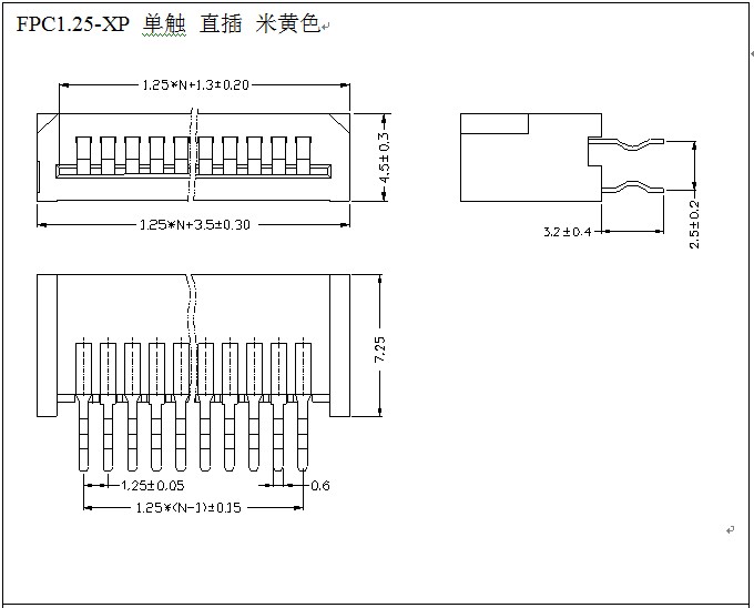產(chǎn)品類型 FPC1.25-XP 間距 1.25mm