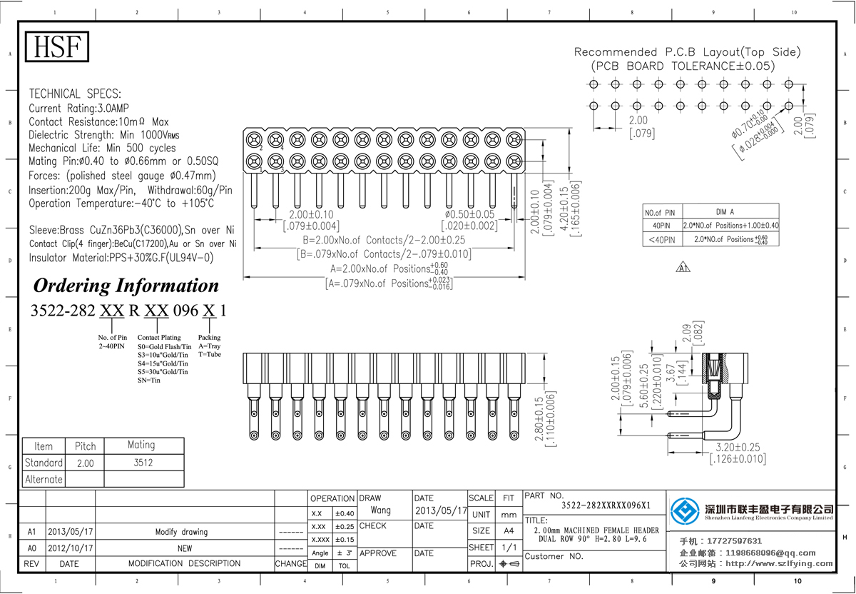 產(chǎn)品分類:圓孔排針排母連接器 產(chǎn)品型號(hào):聯(lián)豐盈 2.0MM 雙排 R/A 圓孔排母 技術(shù)參數(shù):額定電流:3.oamp接觸電阻:1om最大介電強(qiáng)度:MIN 1000vrms機(jī)械壽命:最少500次交配引腳:0.400.66mm或0.