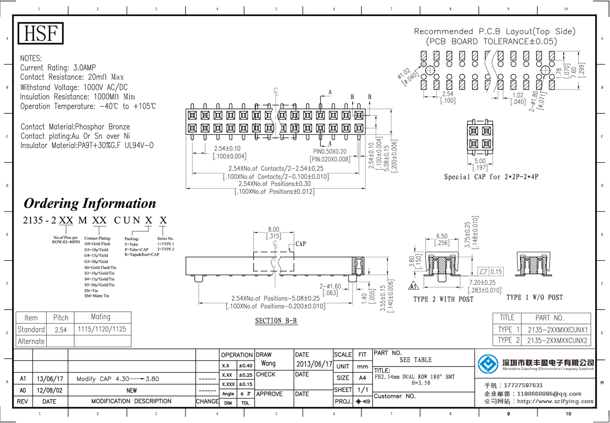 產品分類:排母連接器 產品規格:聯豐盈 UL認證 2.54MM H=3.5MM 雙排 180 SMT 排母 廠家 產品介紹:額定電流:3.0amp電流電阻:20m最大絕緣電阻:1000mmin耐壓:1000V AC /分鐘工作溫度:40﹣℃