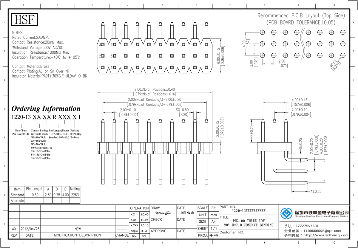 產品分類:排針連接器 產品規格:聯豐盈 排針 2.0MM 單層三排 90度彎插型 防火 產品介紹:額定電流:2.0amp電流電阻:20m最大絕緣電阻:1000m民承受電壓:AC 500V /分鐘工作溫度:40﹣℃