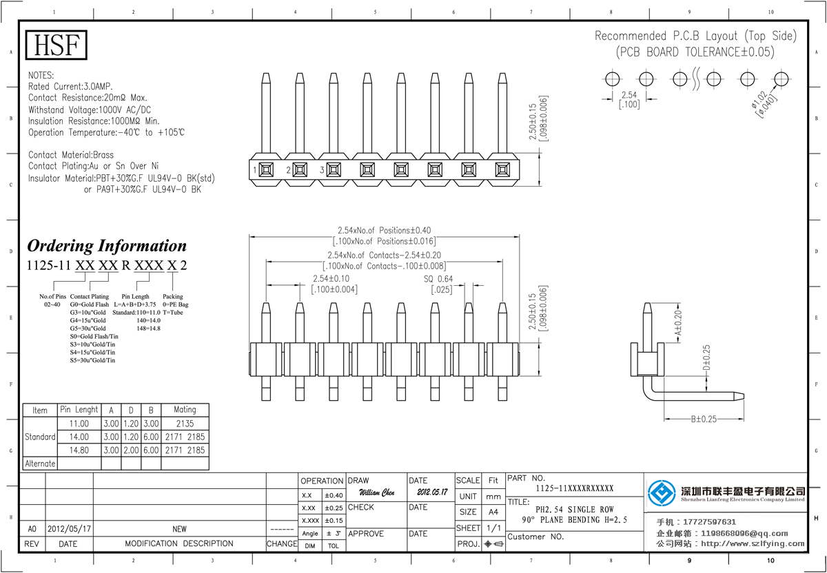 產品介紹:額定電流:3.0amp電流電阻:20mΩ最大絕緣電阻:1000mΩ民承受電壓:AC 500V /分鐘工作溫度:40﹣℃+ 105℃接觸材料:黃銅觸點電鍍金或錫鎳絕緣體材質:聚酯(UL94V-0)標準:PA9T或PBT黑色+ 30% GF