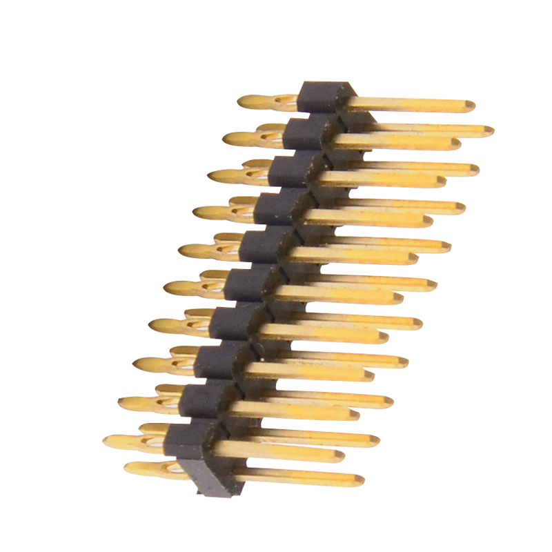 產品分類:排針連接器 產品型號:排針 2.54間距 單層雙排 壓接式 免焊式 產品介紹:額定電流:3.oamp。接觸電阻:2om最大承受電壓:500V的交流/直流絕緣電阻:1000m最低操作溫度:40℃