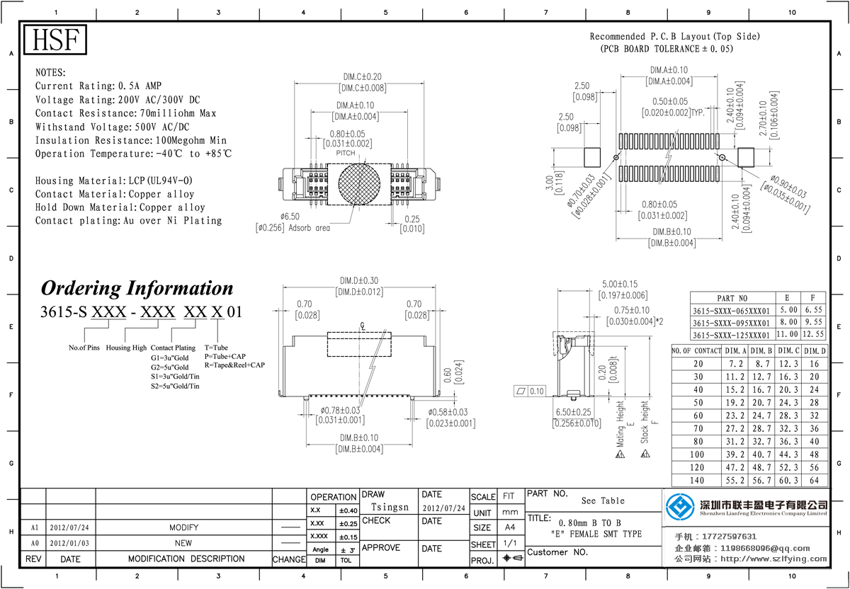 產(chǎn)品分類:Board To Board 連接器 產(chǎn)品型號(hào):0.8MM 母座 卷裝 Board To Board 聯(lián)豐盈 技術(shù)參數(shù):額定電流:0.5amp電流電阻:65m最大絕緣電阻:1000m承受電壓:交流250V /分鐘工作溫度:40﹣℃+ 10