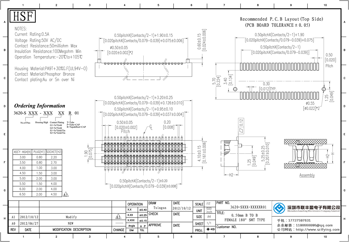 產(chǎn)品分類:Board To Board 連接器 產(chǎn)品型號(hào):0.5MM 母座 雙槽結(jié)構(gòu) Board To Board 板對(duì)板 廠家 聯(lián)豐盈 技術(shù)參數(shù):額定電流:0.5amp電流電阻:30m最大絕緣電阻:100mmin耐壓50V的交流/分鐘:操作溫