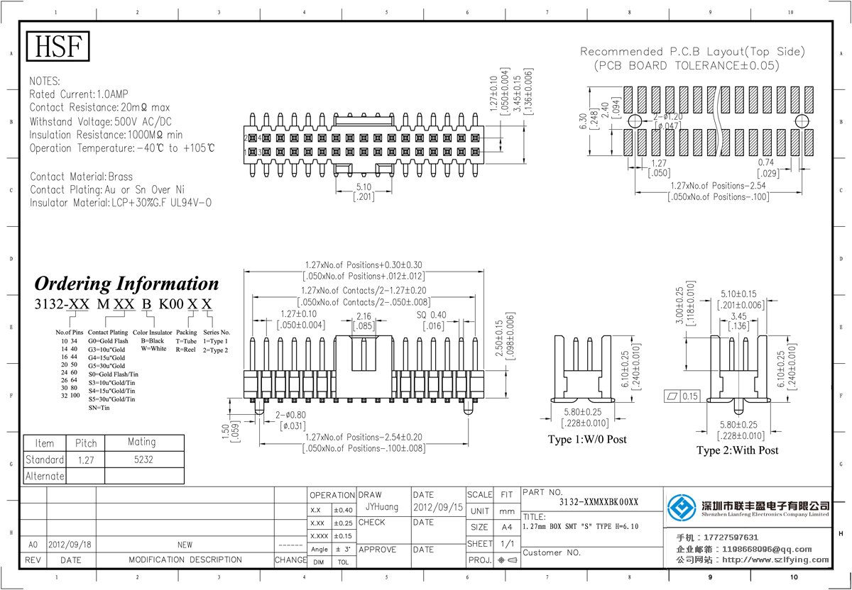 產(chǎn)品分類(lèi):簡(jiǎn)易牛角連接器 產(chǎn)品型號(hào):聯(lián)豐盈 1.27MM Samtec型 180SMT ,滿(mǎn)PIN 簡(jiǎn)牛 生產(chǎn) 技術(shù)參數(shù):額定電流:1.0amp電流電阻:20m最大承受電壓:500V的交流/直流絕緣電阻:1000分鐘操作溫度